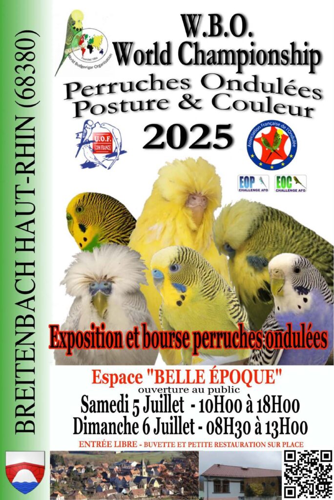 Pour la première fois ce 11ème Championnat du Monde WBO avait lieu en France, à l’espace Belle Époque de Breitenbach-Haut-Rhin les 5 et 6 juillet 2025, tout éleveur de perruches ondulées se devait d’y participer !
